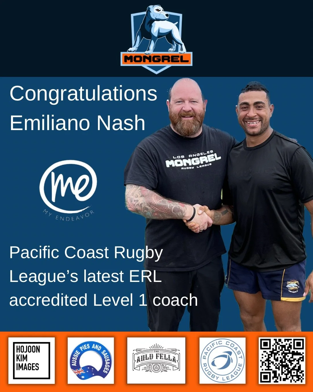 Congratulations to Emiliano Nash for completing his ERL Level 1 coaching course provided by USARL under the guidance of coaching Educator Mike Brogan and assisted by our Head Coach Ady Cooney, he becomes the fifth coach accredited in the Pacific Coast Rugby League competition.